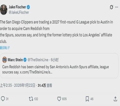 北京时间1月22日,两则发展联盟的签约消息,都是大家很熟悉的球员:1、马刺下属球队奥斯汀马刺签下卡姆-雷迪什,并将其交易至快船下属的圣地亚哥快船队,换来一个发展联盟首轮签;2、热火下属球队签约小丹尼斯-史密斯。
