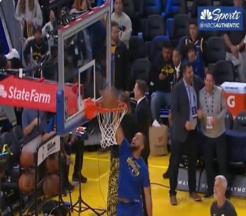 能打几分库里赛前热身时大秀空接暴扣 -