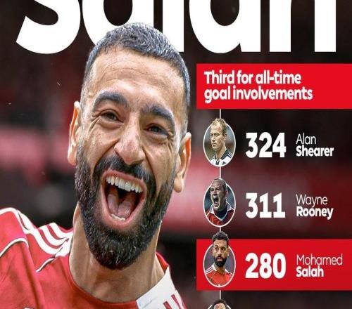 萨拉赫英超生涯已参与280球,超越兰帕德独占历史第三 -